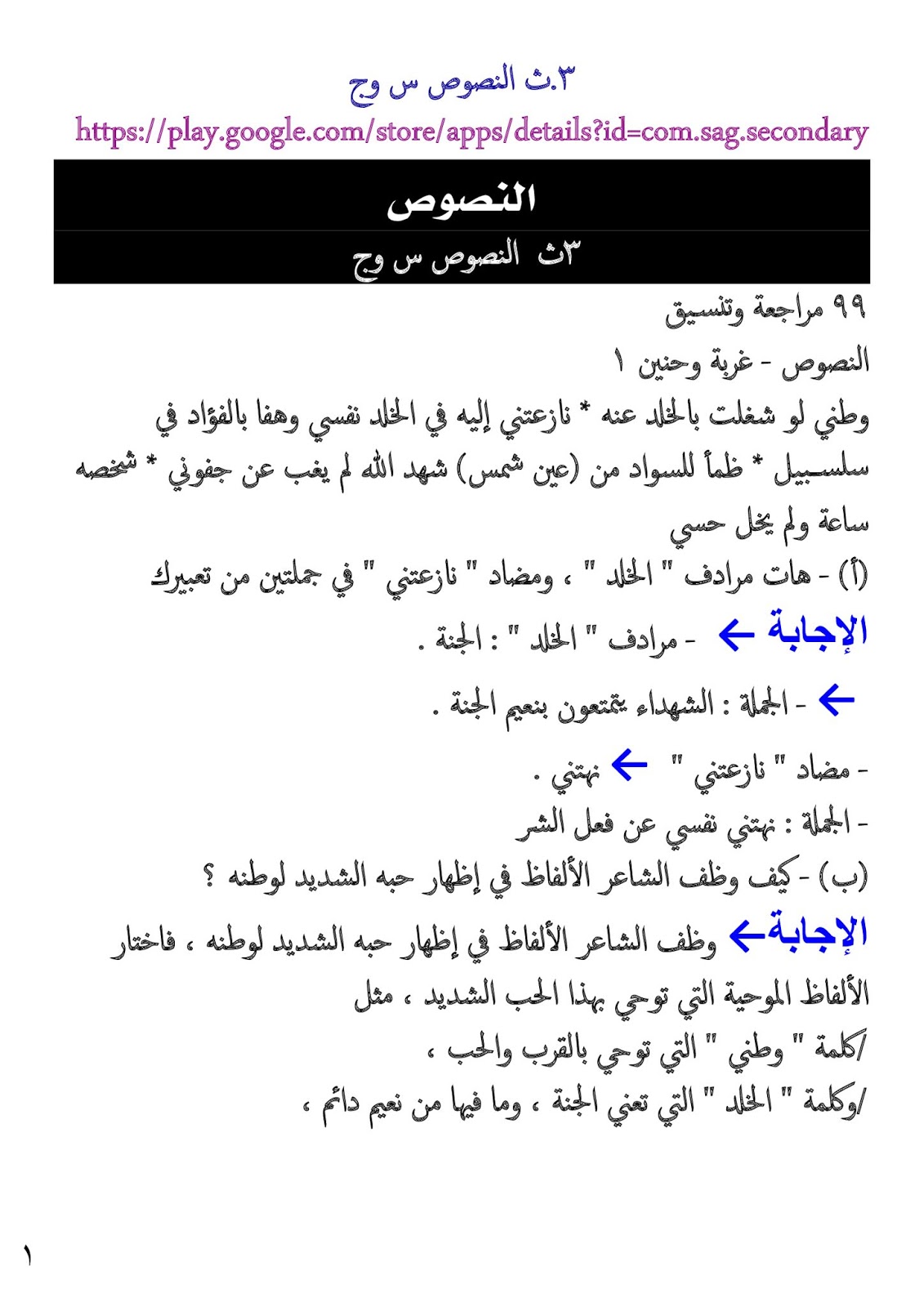 مدونة الأميرة الصغيرة أسماء صلاح التعليمية 3ث النصوص سؤال وجواب 3 ثانوي ثالث ثانوي محولة من Pdf الي صور